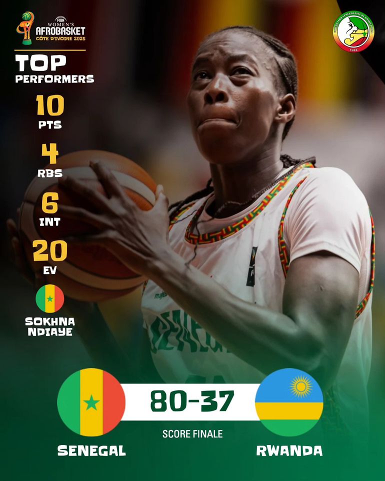 L’équipe nationale féminine de basketball du Sénégal s’est largement imposée ce mercredi face au Rwanda (80-37), décrochant ainsi son ticket pour les quarts de finale de l’AfroBasket, où elle affrontera la Côte d’Ivoire, pays hôte.