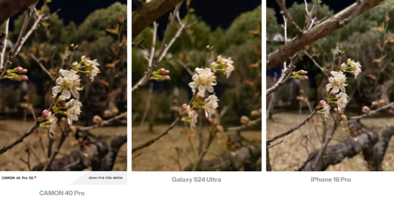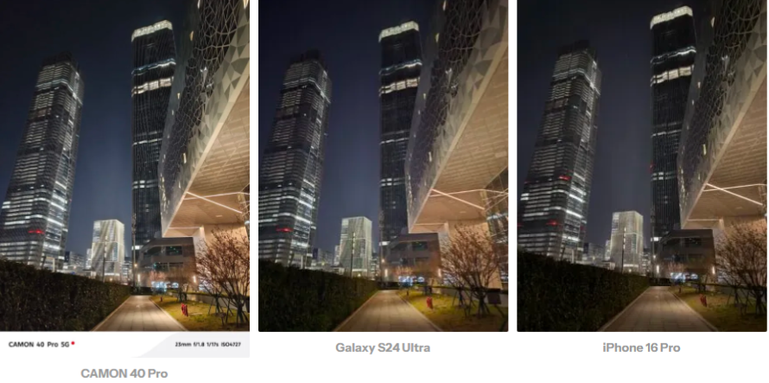 Pour les prises de vue d'action de jour, la vitesse d'obturation plus rapide et la sélection de cadres par IA du CAMON surpassent souvent ses concurrents. En basse lumière, il offre des performances exceptionnelles en termes de couleurs et de tons. De plus, le CAMON 40 Pro brille par sa sensibilité et ses performances en bande de fréquence, qui sont essentielles pour la photographie de nuit.