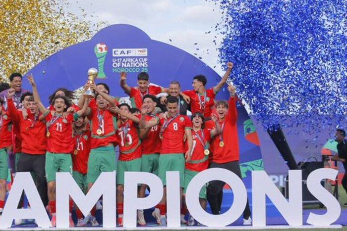 Le Maroc a atteint le graal. L’équipe nationale U17 a remporté la Coupe d’Afrique des Nations U17 après avoir battu le Mali lors des tirs au buts (4-3), conservant ainsi le trophée sur le sol chérifien.Le Mali, double champion de la compétition (2015 et 2017), est entré sur le terrain, bien déterminé à prendre sa revanche sur les Marocains, tombeurs des Aiglons en demi-finale de l’édition 2023.Dès les premières minutes, le Maroc a multiplié les offensives, mettant en danger le gardien malien Sinaba, sans pour autant trouver la faille. Cependant, les Maliens n’ont pas tardé à réagir en faisant trembler les cages de Bellaarouch avec un but à la 20e minute de Fané, annulé par l’arbitre, après vérification de la VAR, montrant qu’il avait été marqué avec la main.