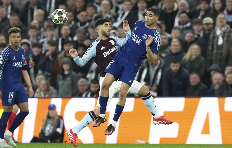 Alors qu’ils avaient gagné 3-1 à l’aller et parfaitement débuté leur quart retour grâce à Achraf Hakimi (1-0, 11e) et Nuno Mendes (2-0, 27e), les Parisiens ont perdu pied en encaissant trois buts de Youri Tielemans (34e), John McGinn (55e) et Ezri Konsa (57e).