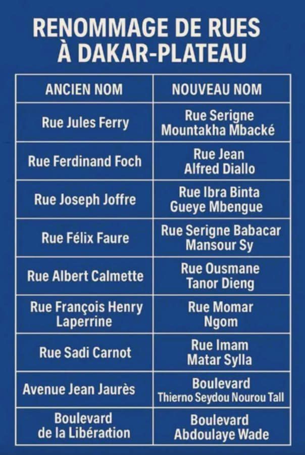 "Cet acte solennel traduit une volonté profonde d’enraciner nos espaces urbains dans la reconnaissance de nos héros et modèles, afin que chaque pas dans Dakar-Plateau devienne un rappel vivant de nos valeurs partagées et de notre engagement collectif pour un avenir plus juste et digne", indique le maire. Le conseil municipal appelle la population à accueillir avec fierté ces changements, qui sont autant d’invitations à la mémoire et à la cohésion.