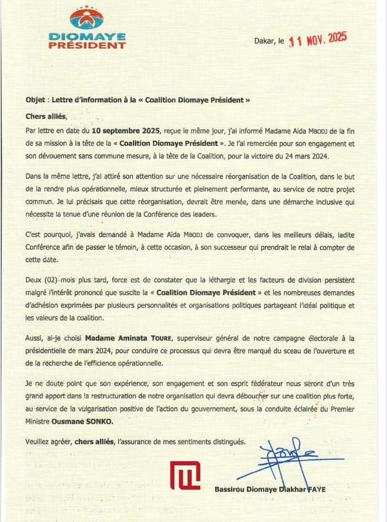 Il dit avoir remercié Mme Mbodj pour « son engagement et son dévouement » mais estime qu’une restructuration profonde est nécessaire pour rendre l’alliance « plus opérationnelle, mieux structurée et pleinement performante ».