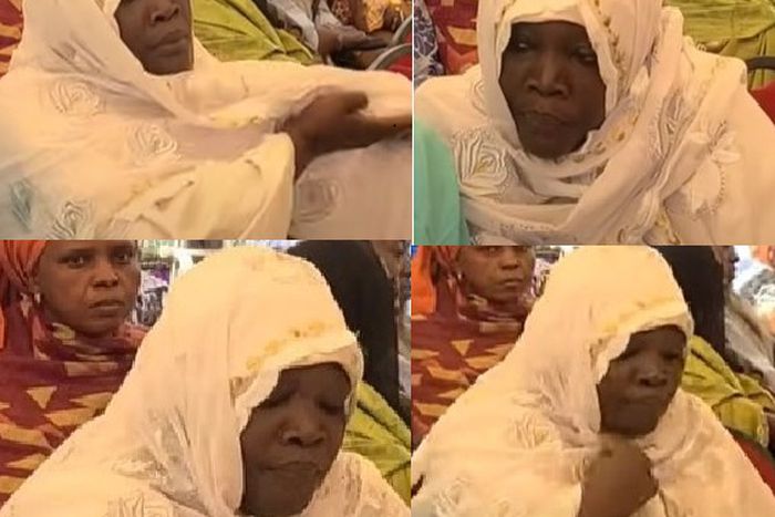 Ndella Madior, toute de blanc vêtue, avec un grand foulard blanc...
