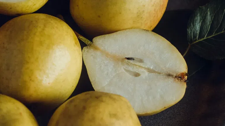 Les poires sont faibles en calories et en gras, ce qui en fait un choix sain pour les personnes qui cherchent à maintenir un poids santé. En effet, la poire est composée à 85% d’eau ! Un excellent choix pour se désaltérer en été !