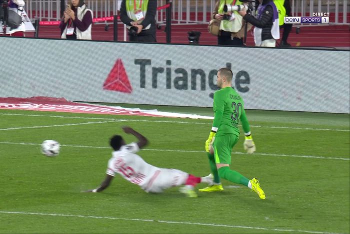 Assurément, et sans l’ombre d’un doute, le tacle de Lamine Camara à l’encontre du portier parisien Lucas Chevalier méritait un carton rouge. Il n’y a qu’à voir les traces de crampon sur la cheville du malheureux pour s’en convaincre. A vitesse réelle comme au ralenti, la violence du choc ne laissait guère de doute. Pourtant Clément Turpin – certes très éloigné de cette action de relance – n’a pas bronché. Pas plus que la VAR.