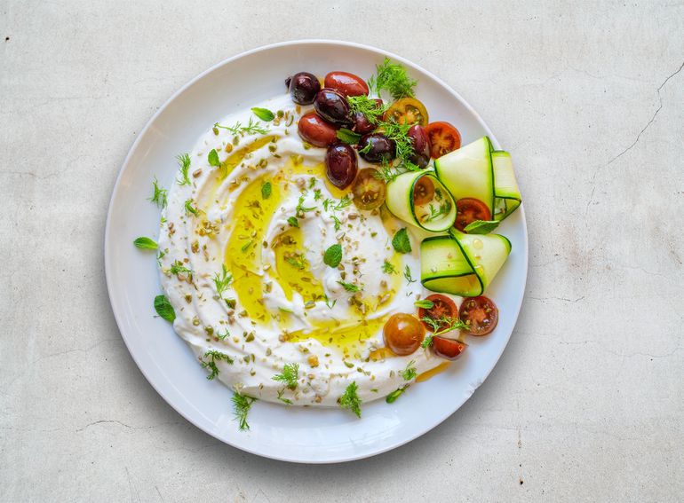 Le labneh, un fromage fermenté d’origine moyen-orientale, est la vedette de cette entrée. Il est préparé en égouttant du yaourt grec mélangé à du sel, ce qui lui confère une texture crémeuse. « Il contient des souches de bactéries bénéfiques, telles que les lactobacilles et les bifidobactéries, qui peuvent favoriser notre digestion des aliments, soutenir notre immunité et aider à maintenir un équilibre sain du microbiote intestinal », explique Dominique Ludwig au Telegraph.
