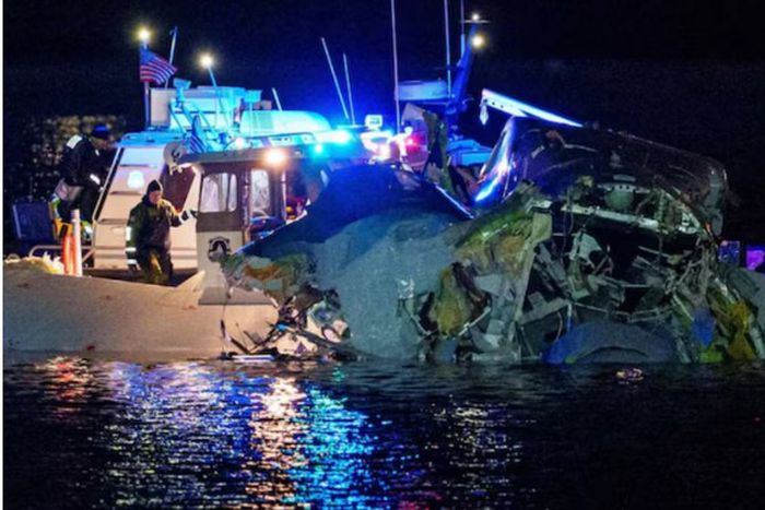 Selon les premiers éléments fournis par le régulateur américain de l’aviation (FAA), un avion du constructeur Bombardier, exploité par la compagnie PSA «est entré en collision à altitude moyenne» avec un hélicoptère Sikorsky H-60 au moment de l’approche pour atterrir à l’aéroport Reagan, qui se situe en lisière de la capitale fédérale et du fleuve Potomac.