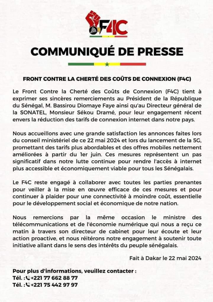 Cette décision de faire baisser les prix de la connexion aurait été prise lors du conseil des ministres du 22 mai 2024.