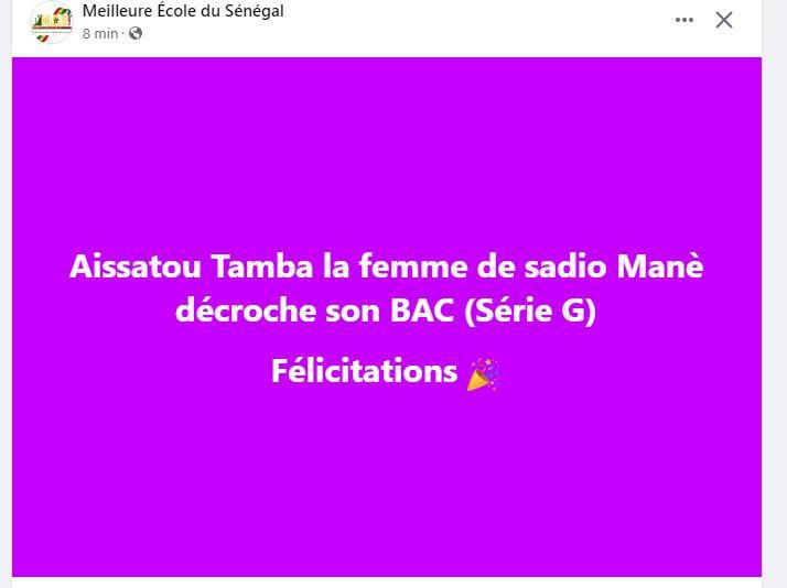 Aicha Tamba a réussi à obtenir son Bac d’office avec mention Passable. Dans une vidéo filmée, on aperçoit Sadio Mané explosait de joie, après que sa femme a décroché le fameux sésame.
