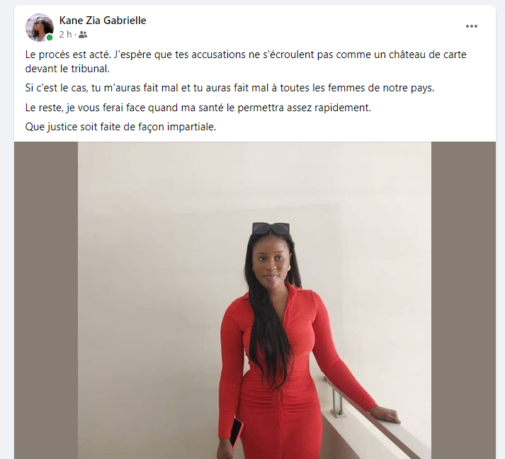 « Si c’est le cas, tu m’auras fait mal et tu auras fait mal à toutes les femmes de notre pays. Le reste, je vous ferai face quand ma santé le permettra assez rapidement », prévenait Gabrielle qui souhaite « que justice soit faite de façon impartiale », dans ce dossier.