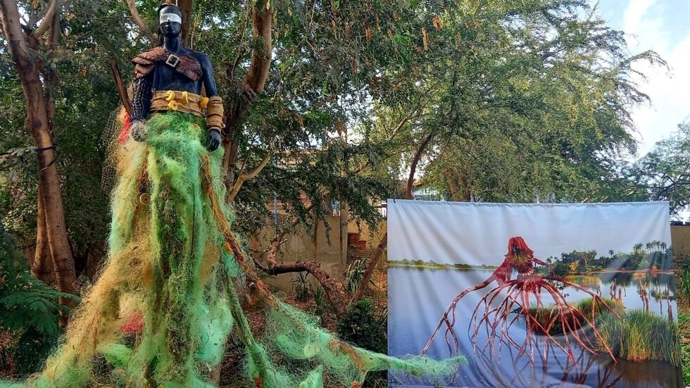 Sculpture de l'artiste Fabrice Monteiro présentée à l'Oceanium dans le cadre de la Biennale de Dakar, en mai 2022