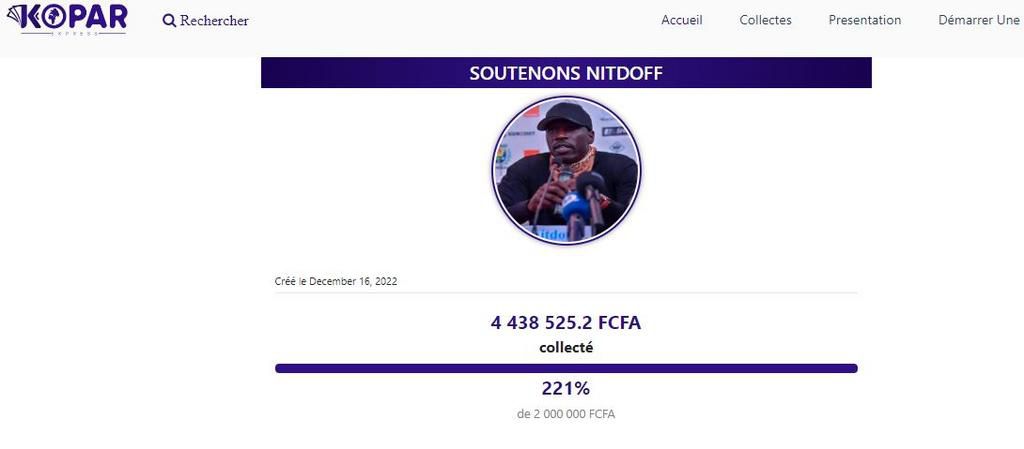 Quelques heures après la sortie de NitDoff, la mafia Kacci Kacci a lancé une cagnotte pour soutenir le rappeur. L'objectif était de collecter une somme deux (2) millions FCfa en faveur de NitDoff. Mais en seulement quelques heures, ils ont obtenu 1300 participants et la cagnotte a atteint plus de 4 millions de FCFA.