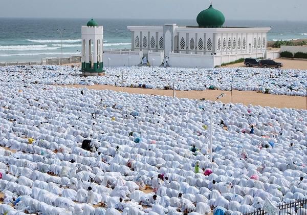 Les Layennes priant devant le Mausolée de Seydina Issa Laye lors du 138è Appel