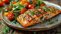 des céréales complètes, des légumes et du poisson.