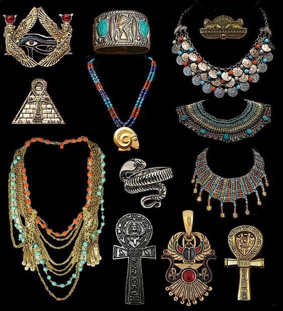 Les bijoux avaient aussi une fonction commémorative en Egypte. À cet effet, il y avait des amulettes spécifiques pour l’au-delà. Selon Britannia, » Le scarabée, la fleur de lotus, le nœud d’Isis, l’œil d’Horus, le faucon, le serpent, le vautour et le sphinx sont tous des symboles de motifs liés à des cultes religieux tels que le culte des pharaons et des dieux et le culte des morts. »