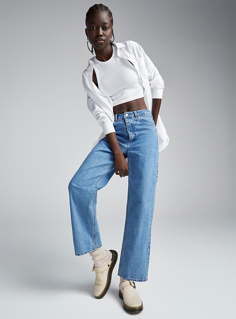 Les jeans flare se caractérisent par une large ouverture de la jambe qui commence sous le genou, créant une forme distincte en cloche. Il était très à la mode dans les années 1970 et a fait son retour dans les tendances récentes de la mode.