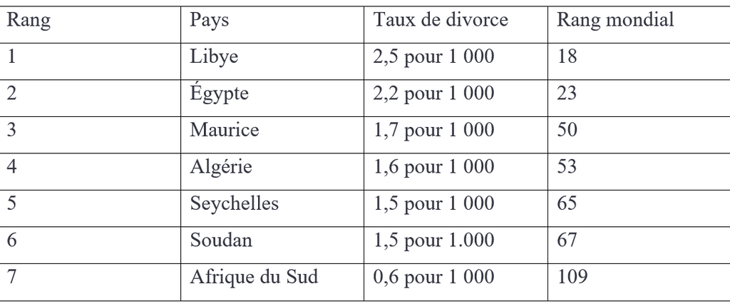 Bien que les données spécifiques sur le divorce en Afrique demeurent partielles, un rapport récent de Wisevoter offre un aperçu des tendances mondiales du divorce par pays. Cette analyse met en lumière les réalités changeantes des structures familiales africaines et souligne l'importance croissante de comprendre ces dynamiques pour mieux appréhender les défis contemporains auxquels sont confrontées les sociétés africaines. En explorant les pays les plus touchés par le divorce sur le continent, ce classement offre une perspective unique sur cette évolution sociétale majeure.