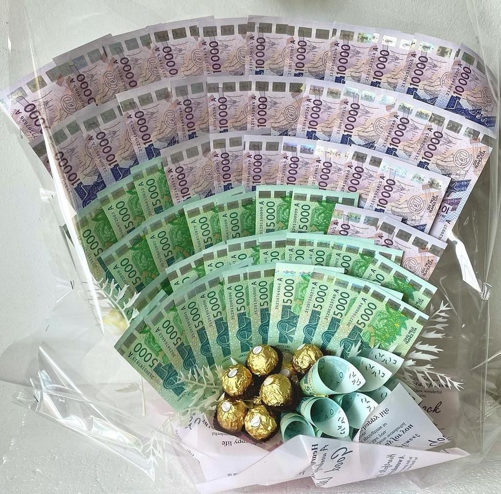 La nouvelle tendance actuellement, ce sont les bouquets d'argent. A la place des bouquets de rose, vous pouvez le remplacer par des billets de banque. Quelques soit le montant que vous disposez, vous pouvez avoir votre bouquet d'argent accompagné d'une note d'amour qui fera fondre votre bien aimée.