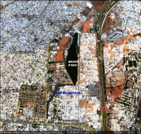 Le bassin de la zone de captage, construite en 2005, avait principalement pour vocation de recueillir les eaux pluviales venant de quartiers de Dakar tels que Bourguiba, la Patte d’Oie et de Grand-Yoff, par le biais d’un système de pompage des eaux pour les drainer vers la mer.