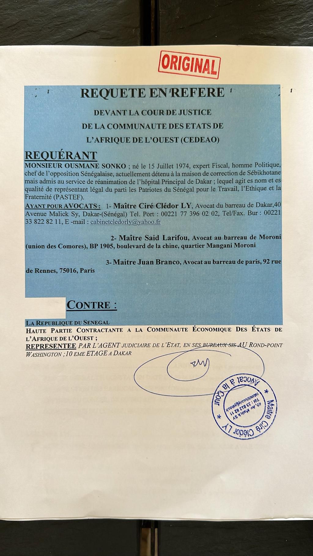 Mes Juan Branco et Said Larifou ont déposé une requête en Référé auprès de la Cour de justice de la Cedeao pour obtenir la libération de Ousmane Sonko, en prison depuis le 30 juillet 2023. « Avec mes très honorables confrères, nous continuons l’offensive, cette fois à Abuja, pour obtenir la libération et la participation d’Ousmane SONKO aux élections de février 2024 », a indiqué Me Juan Branco sur son compte X.