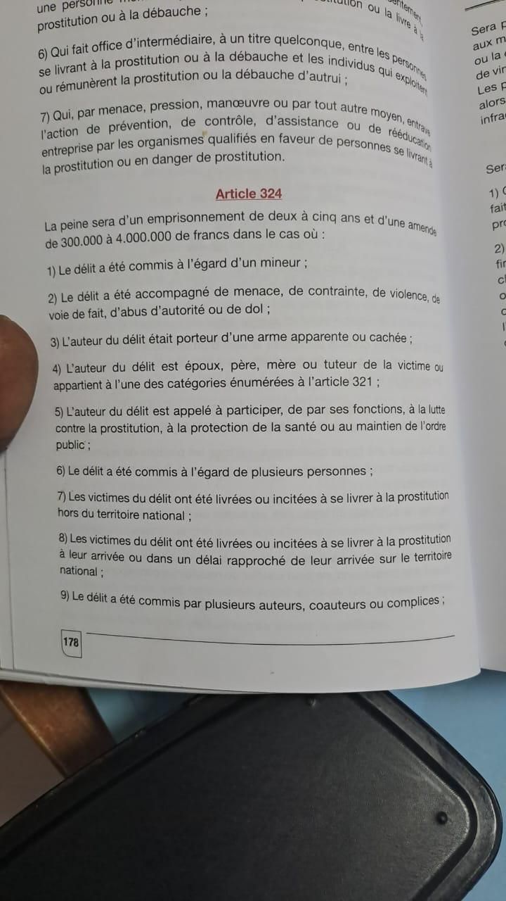 A noter que ce délit est différent de la corruption de mineur prévu dans l’article 320 ter dudit Code et puni d’un emprisonnement d’un à cinq ans et d’une amende de 100 mille à 1 million 500 F Cfa. Les peines encourues sont de trois à sept ans d’emprisonnement et de 200 mille à 3 millions F Cfa d’amende lorsque le mineur est âgé de moins de treize ans accomplis.