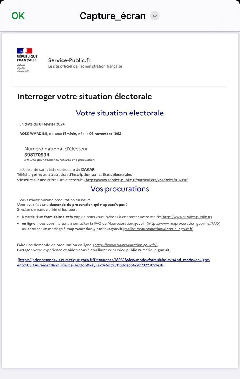 Son nom est apparu sur le fichier électoral français. En date du 1er février 2024, Rose Wardini née le 3 novembre 1962 est présente sur le fichier électoral français. Elle est inscrite sur la liste consulaire de Dakar. Sur X, (ex Twitter), les internautes sont très surpris. Ils sont très nombreux à réagir dès l’apparition de cette nouvelle. Apparemment le conseil constitutionnel a oublié la française Rose Wardini.