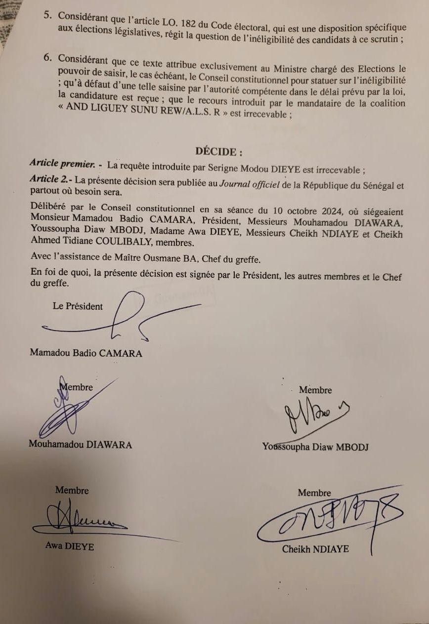 Représentée par Maguette Sy, cette coalition contestait la validation de la candidature de Sonko, investie sur la liste nationale par son parti, PASTEF.