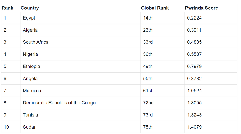 Voici les 10 premières nations africaines selon le classement de GFP pour 2023 :