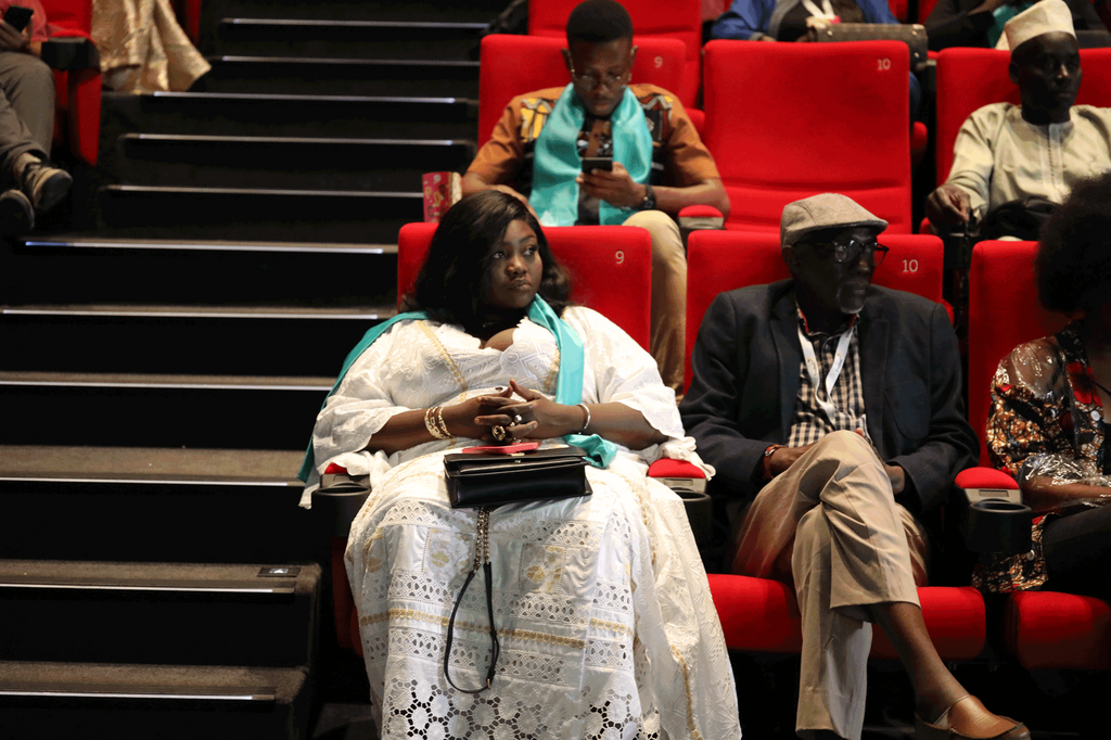 Les spectateurs venus de divers horizons remplissent progressivement la salle avant le début de la projection du film documentaire « Wóolu naa la ci ».