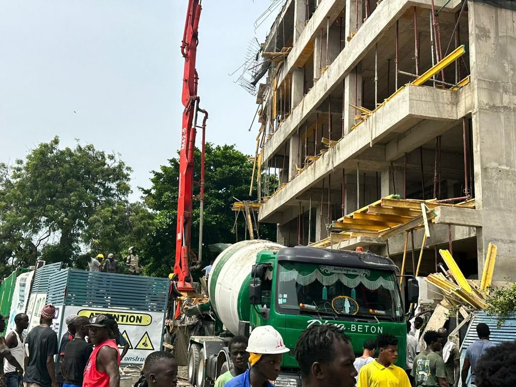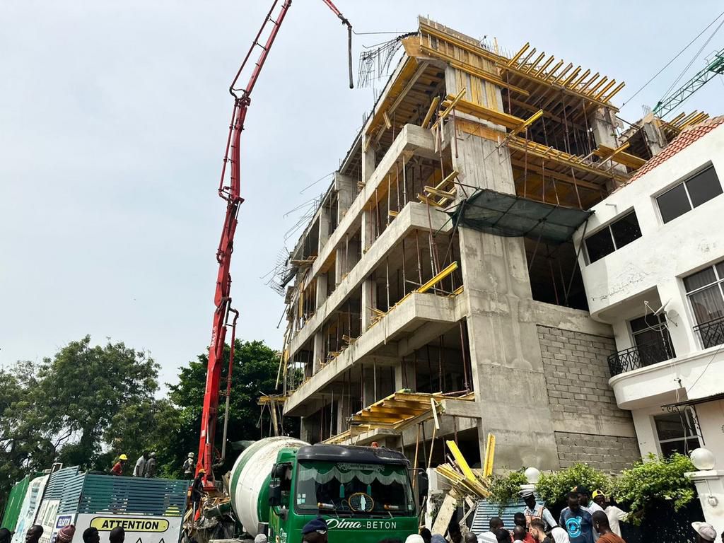 07 octobre 2023 à 14:47Une partie d’un immeuble en construction, située en face face du rond-point de la Cour suprême, s’est effondréeImmeuble effondré