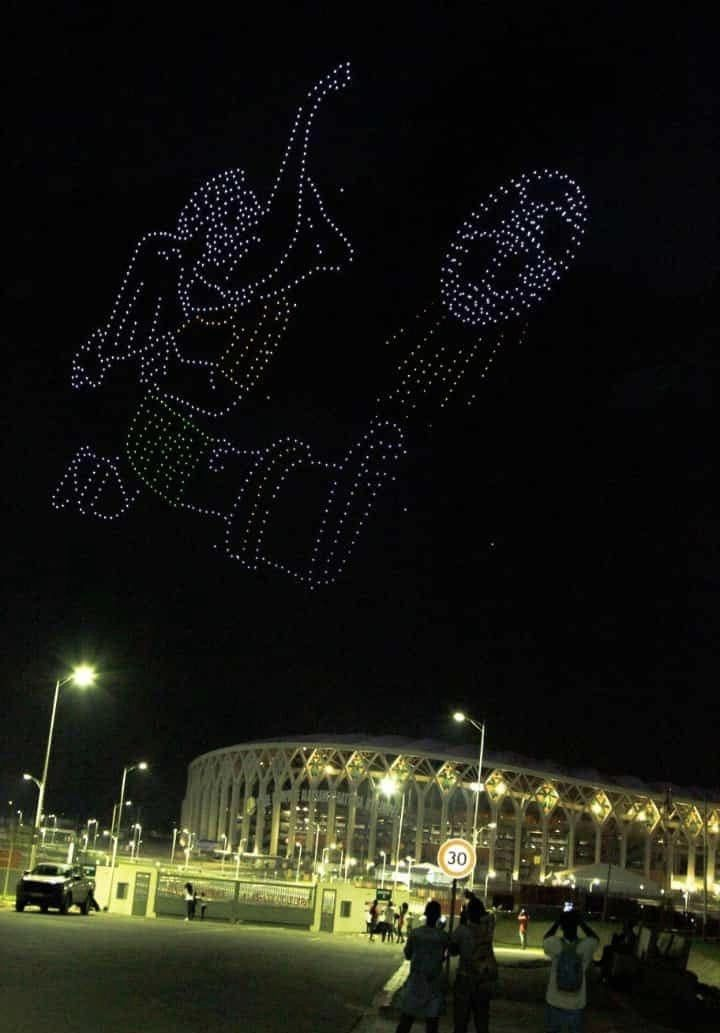 La CAN 2023 s’annonce comme la plus belle jamais organisée en Afrique. En ce sens, la Côte d’Ivoire veut mettre la barre très haut. La preuve par mille ! Le spectacle pour la cérémonie d'ouverture de la CAN 2023 promet d'être grandiose. Des vidéos (voir ci-dessous) montrent des objets en forme de drones lumineux, lesquels alignés, survolent le ciel et atterrissent aussitôt tout en gardant l’alignement de départ.