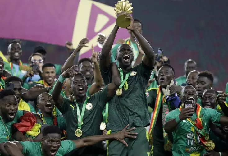 Le Sénégal est le tenant du titre de la CAN Images des joueurs lors de la remise du trophée le 6 février 2022 AP PhotoSunday Alamba