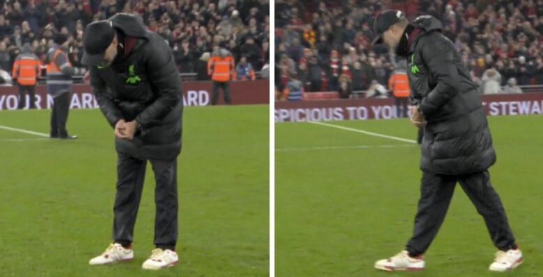 Heureux de la prestation des siens, Jürgen Klopp a voulu comme à son habitude célébrer le succès avec le kop d'Anfield quand patatras... L'entraîneur allemand s'est stoppé net sur la pelouse, visiblement gêné et perturbé par la perte... de son alliance.
