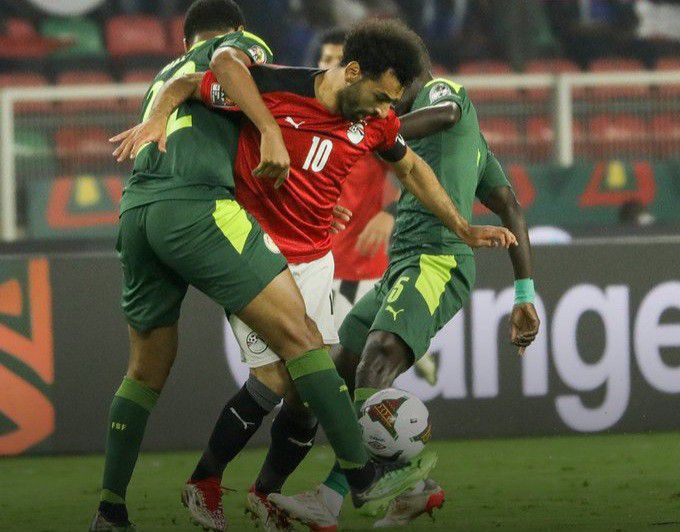 La première réponse égyptienne est à l'initiative de Mohamed Salah - peu avant la demi-heure de jeu - qui dribble quatre joueurs sénégalais avant de frapper. Trop écrasé là encore, le tir est aisément capté par Édouard Mendy (28e). À l'approche de la mi-temps, le rythme retombe d'un cran et les occasions se raréfient. En fin de première période toutefois, Mohamed Salah, encore lui, contraint Édouard Mendy à s'illustrer d'une très belle parade (43e). Et à la pause, les deux sélections sont dos à dos (0-0).