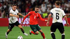 L’attaquant d’Al-Nassr était accompagné de Pedro Neto, Bruno Fernandes et Trincao sur le front de l’attaque. Les Parisiens Joao Neves et Nuno Mendes étaient également titulaires. Le coup d’envoi de cette rencontre était d’ailleurs retardé d’une dizaine de minutes après de fortes pluies et de la grêle. Mais dans le début de match, c’est l’Allemagne qui se montrait la plus dangereuse. Woltemade puis Goretzka ne passaient pas loin d’ouvrir le score. Mais Diogo Costa réalisait deux grosses parades. Ce sera les deux seules alertes de la première période. Après 45 minutes, les deux équipes rentraient au vestiaire sur un score nul logique avec une légère domination allemande.